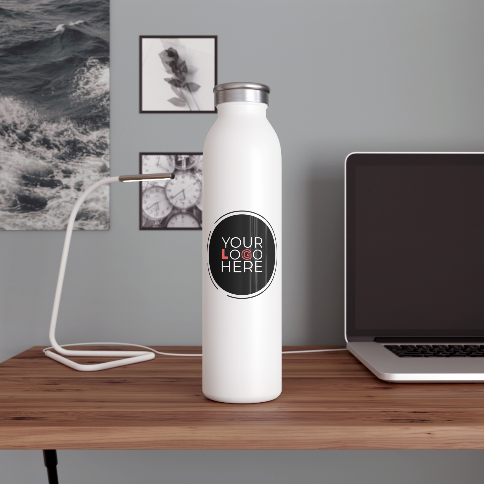 This 20oz Slim Water Bottle features double-wall stainless steel and vacuum insulation to keep drinks hot or cold for hours. Its matte finish and glossy print area make it perfect for custom designs, branding, or resale. Durable, stylish, and easy to carry—great for daily use or gifting.