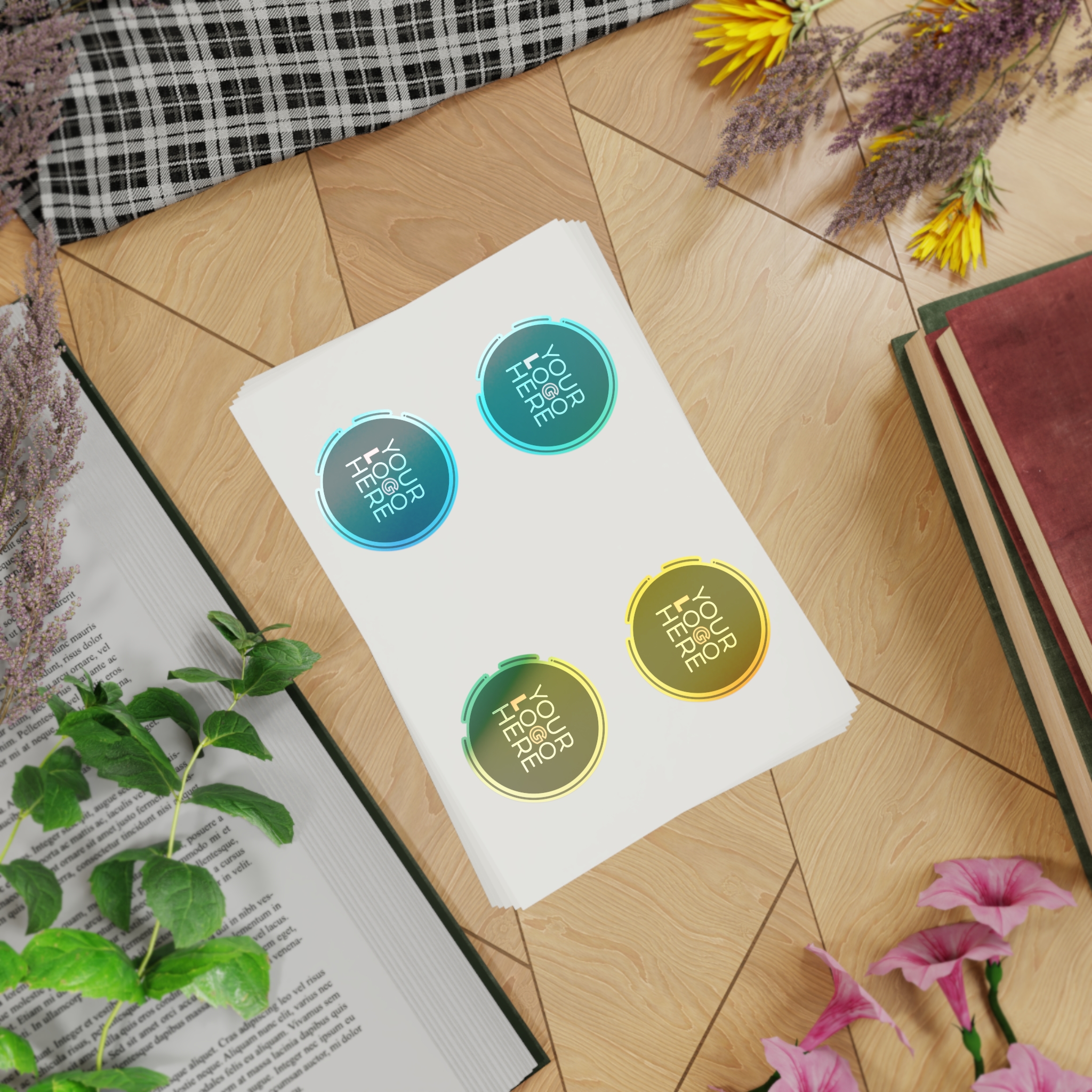 The Sticker Sheet Bundle (5pcs) brings your designs to life in vibrant color and durable style. Choose your finish — white, holographic, or transparent — and get ready to stick your creativity everywhere.