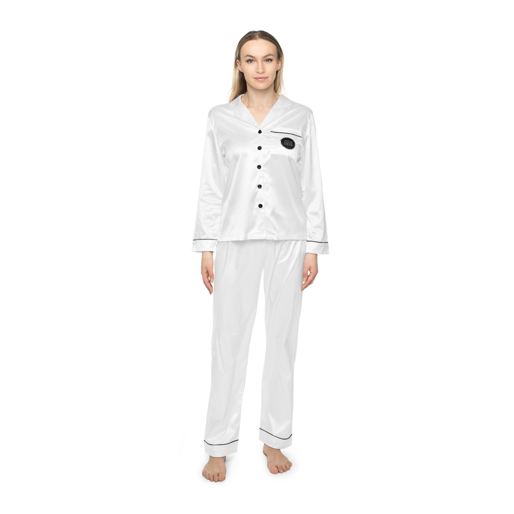 Slip into ultimate comfort and elegance with these Women’s Satin Pajamas (AOP). Made from a silky-smooth blend of satin polyester and spandex, this set feels luxuriously soft while offering a perfect fit with its drawstring waist. Finished with a classic notch lapel collar and sleek details, these pajamas bring a touch of style to your lounging and bedtime routine.
